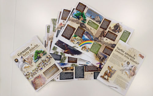 Genom hela Bibeln är en stor tidslinje (över tre meter) som ger barn och unga hjälp med att förstå mer av Bibelns helhet och Guds storslagna plan för människans räddning. Bilderna är hämtade från Resan genom Bibeln. Paketet innehåller förutom tidslinjen också en kort handledning hur man kan använda tidslinjen i en grupp.